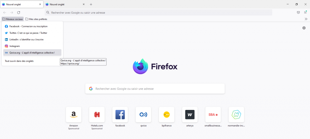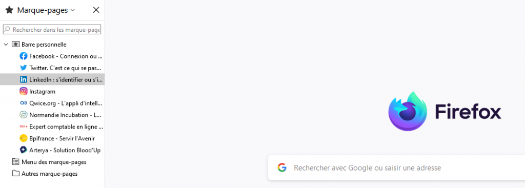 En ajoutant ces favoris à votre barre personnelle, vous pourrez rapidement y accéder au lancement de votre navigateur, comme ceci :